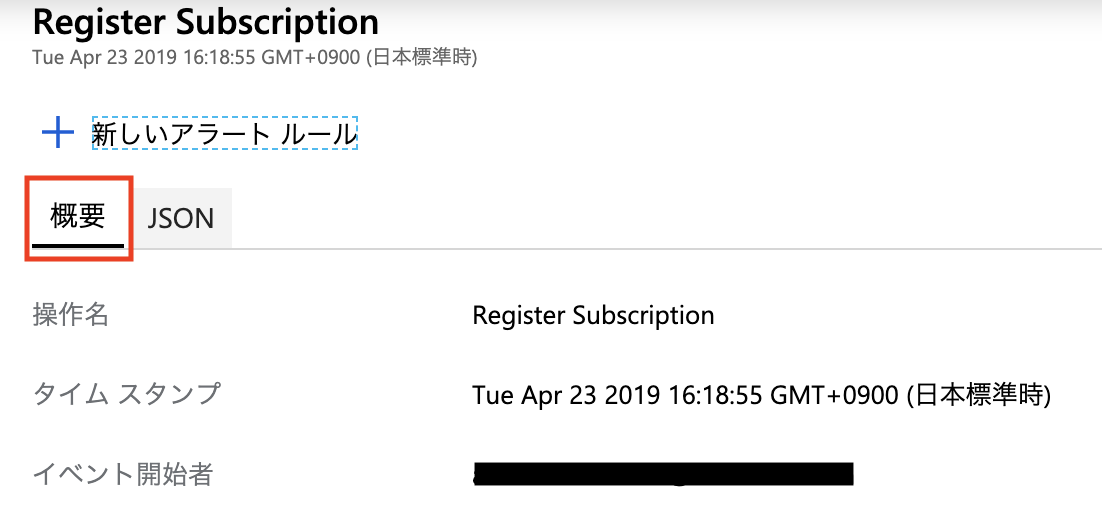 まず、Register Subscriptionをクリックすると、概要タブが開いて、ローカルタイムで誰が操作したのかがわかります。