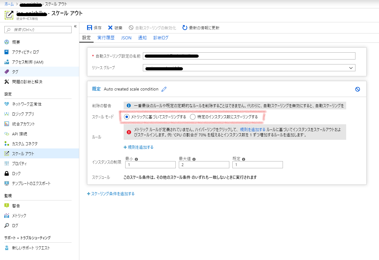 スループットが必要であれば、スケールユニットを追加可能(自動スケールも可能)。メトリックに基づくスケール、特定インスタンス数へのスケールを設定できる。