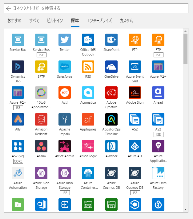 - ISEのラベルが付いたもの:ロジック アプリと同じISE内で実行したい場合に利用