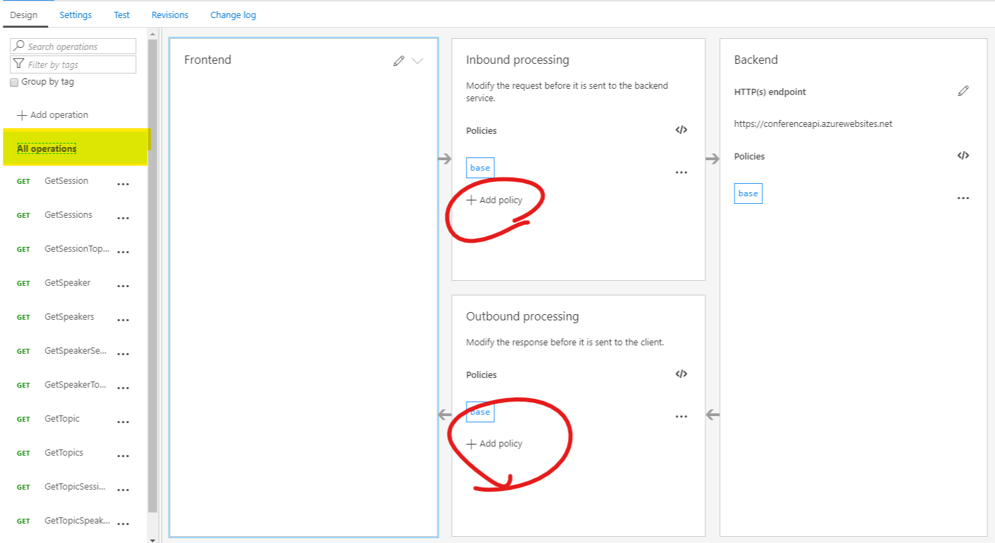 そのため、例えばAPIの各Operationに共通するポリシーを設定する場合、All Operationsのフロー内で設定できる(つまり、個々のオペレーションごとに設定する必要はない)。