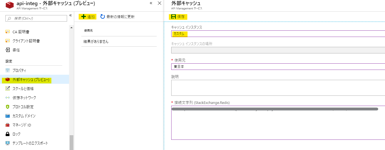 - 1.で作成したCacheを2.で作成した(もしくは既存の)Azure API Managementインスタンスに関連付ける。