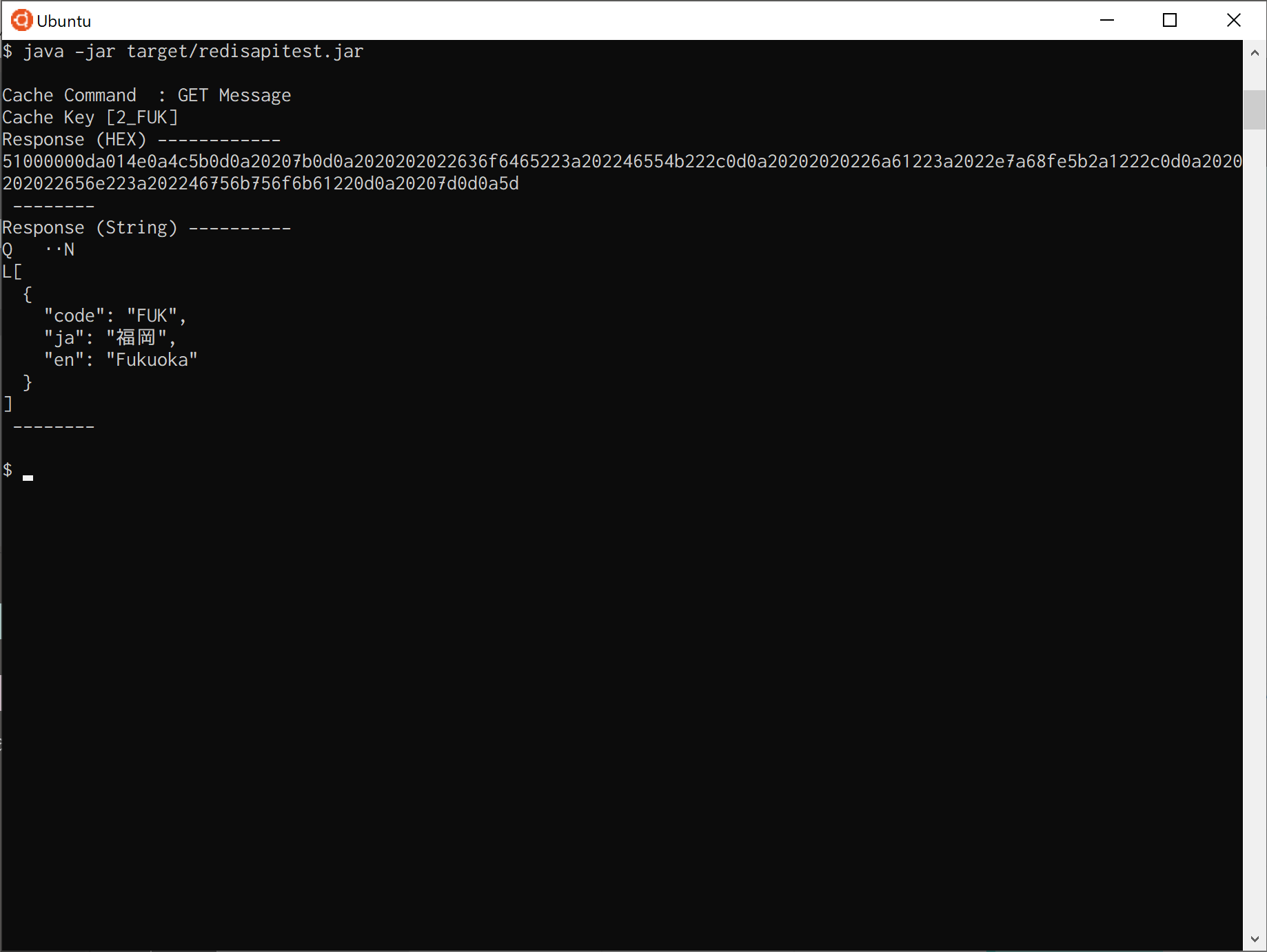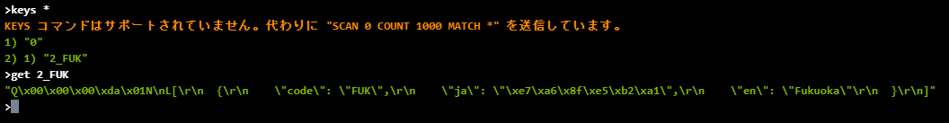 コードとしてFUKを指定してAPIを呼ぶと、キャッシュにキーが追加されていることが確認できる。キーに対応する値が文字列として格納されていることも確認できる。