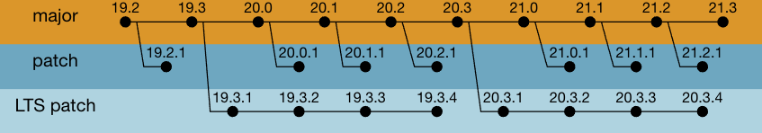 予測可能なリリース日とアップデートリリースに関する情報を含むバージョンロードマップの説明を作成しました。以下のURLにあるリリースツリーの図の下にあります。
