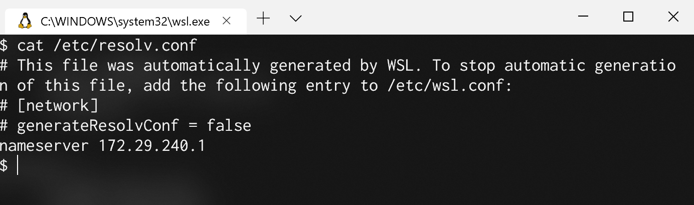 これをWSL2から確認するためには、ドキュメントに記載の通り、WSL2側で/etc/resolve.confのnameserverに相当するIPアドレスを使う必要がある。