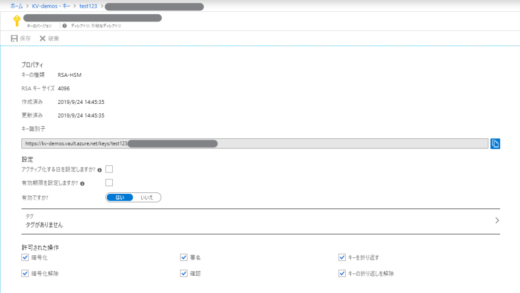 作成したら、キー識別子を確認しておく(この識別子はSDKを呼び出すときに必要)。今回は「許可された操作」として全ての操作を選択しているが、実際には必要最低限の操作のみ許可すべきである。