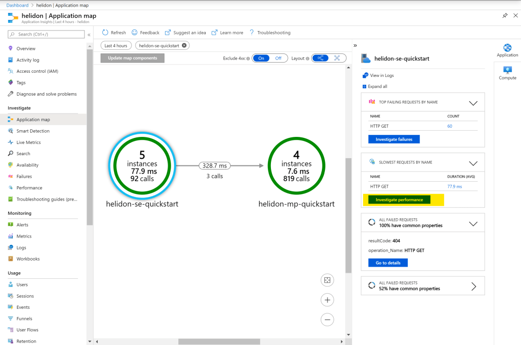 I clicked circle “helidon-se-quickstart”, and then clicked yellow-marked “investigate performance”.