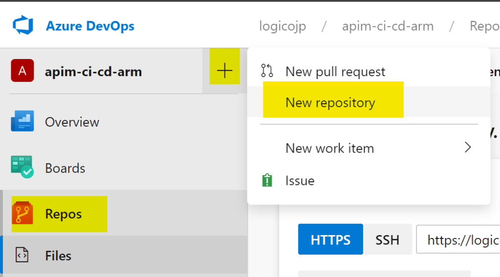 - Azure DevOpsの左側のメニューでReposを選択