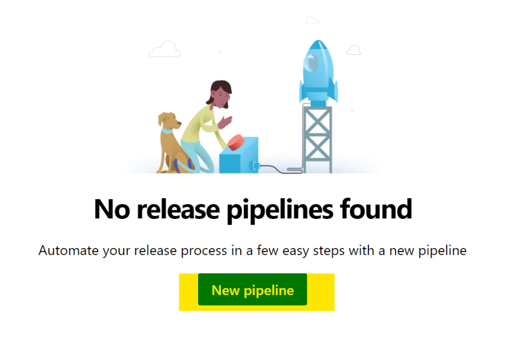 Pipelines > Releasesをクリックすると、New pipelineというボタンが現れるので、これをクリック。