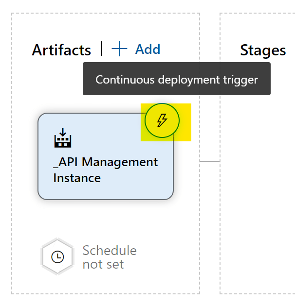 アーティファクトの右肩にある稲妻アイコンをクリック。ここでContinuous deploymentのトリガーを設定する。