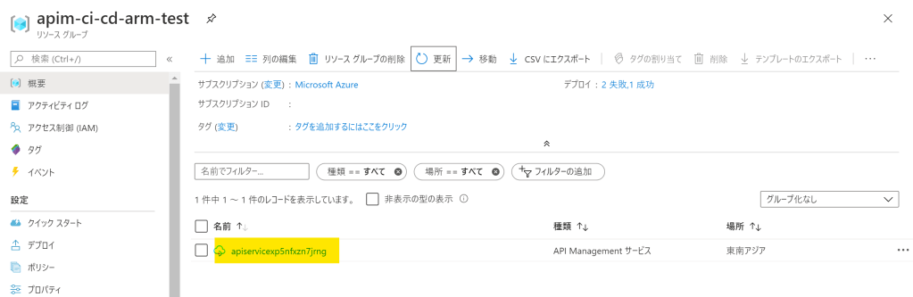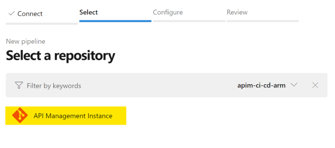 選択するリポジトリは、先ほど作成したAPI Management Instance。
