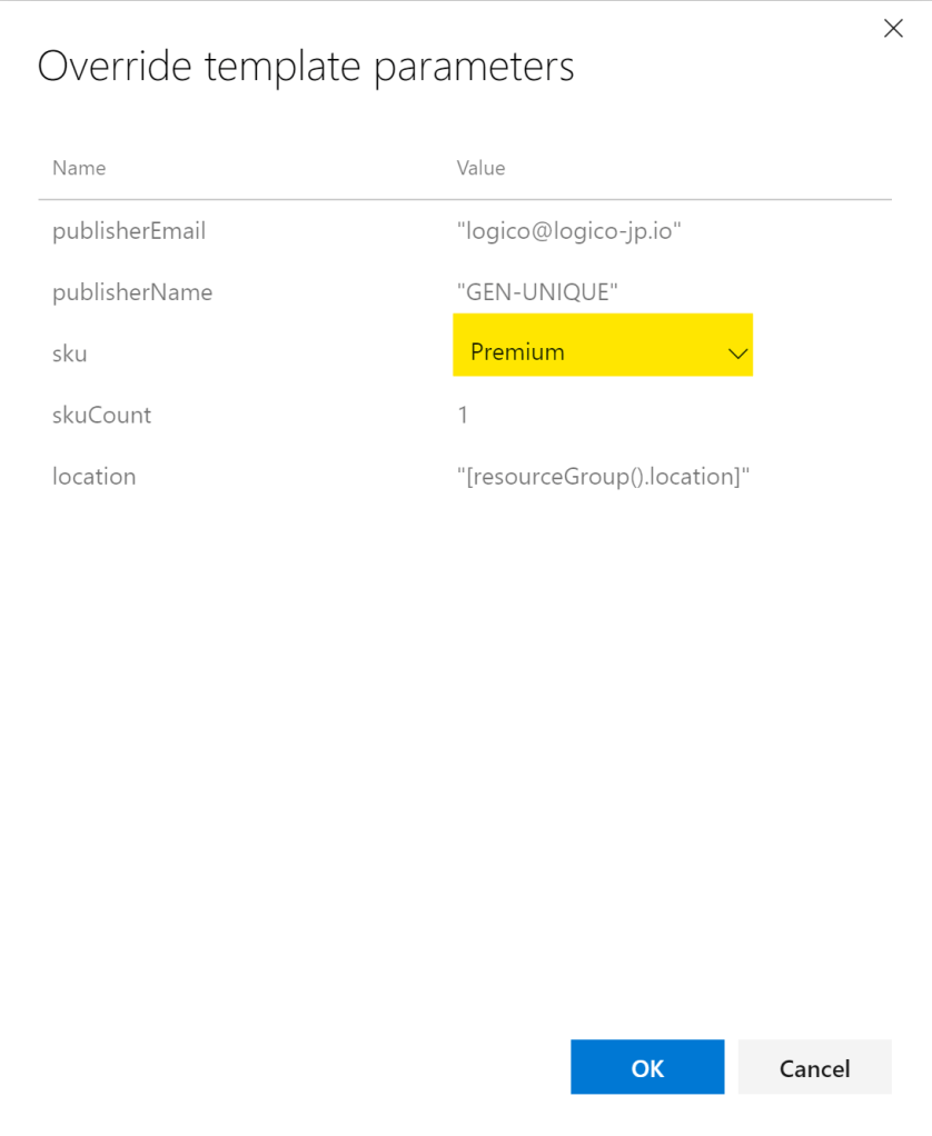 クリックすると、変更可能な値がリストで表示されるため、適宜設定する。今回はSKUとしてPremiumを指定。