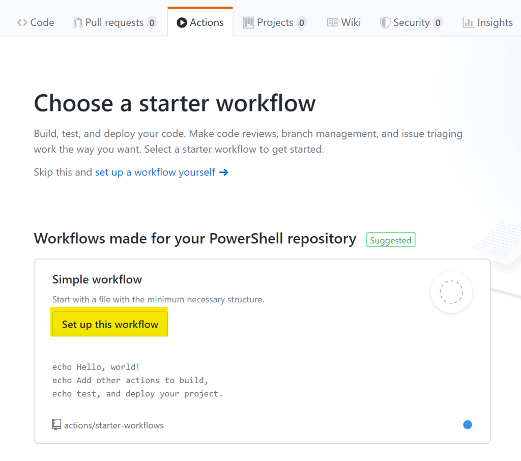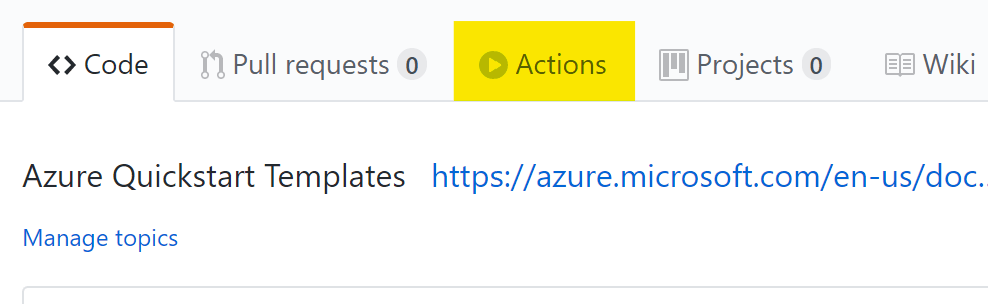 続いて、ワークフロー用のYAMLファイルを作成するために、GitHubリポジトリのActionsタブをクリック。