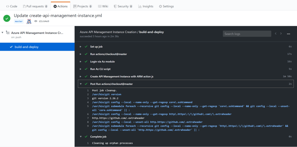 - name: Create API Management Instance with ARM action js