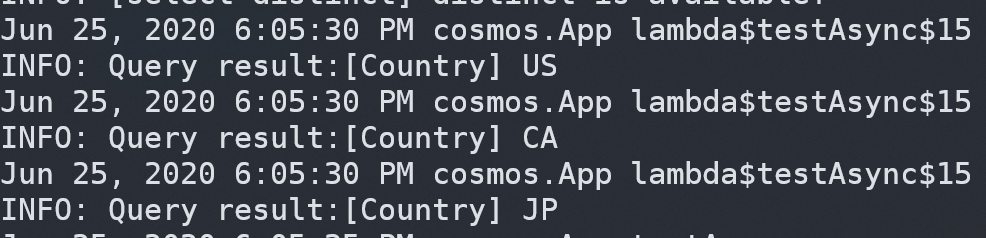 fp.stream().forEach(p -> logger.info("Query result: [Country] " + p.getCountry()));