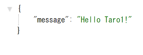 When calling GET /greet/{name} (http://<Azure App Service URL>/greet/Taro1), the following response comes back.