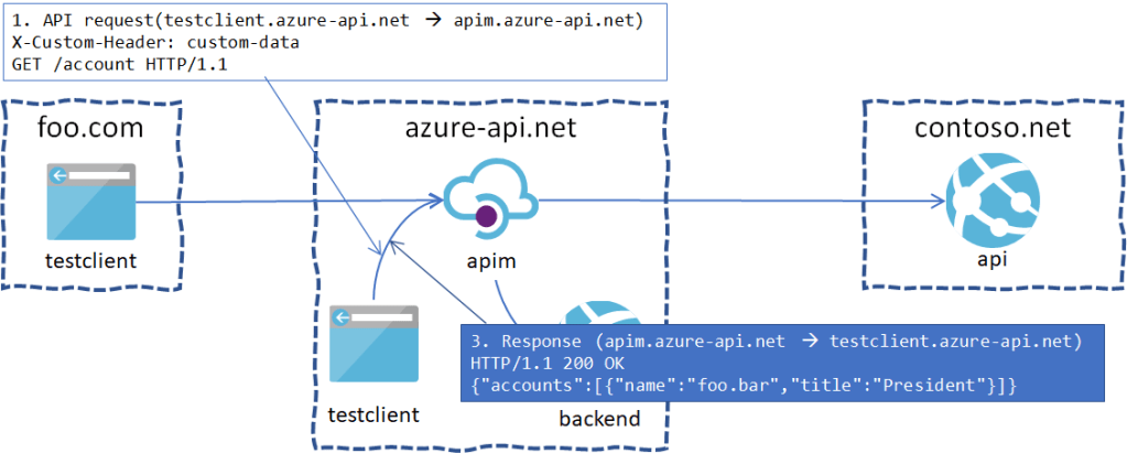 なお、この例ではGatewayにのみフォーカスするため、testclient.azure-api.netからの呼び出しを想定する。その後外部ドメインのクライアントからのアクセスのためのCORSポリシー設定について考える。