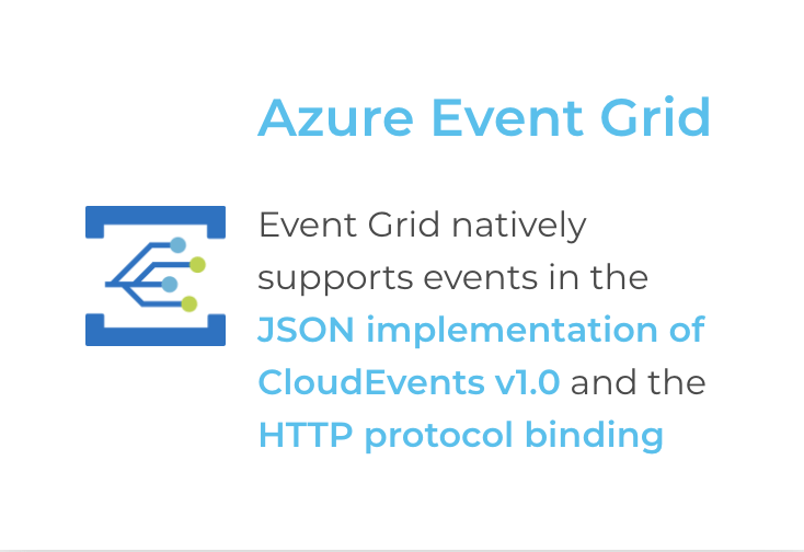 Azure Event Grid – Event Grid natively supports events in the JSON implementation of CloudEvents v1.0 and the HTTP protocol binding