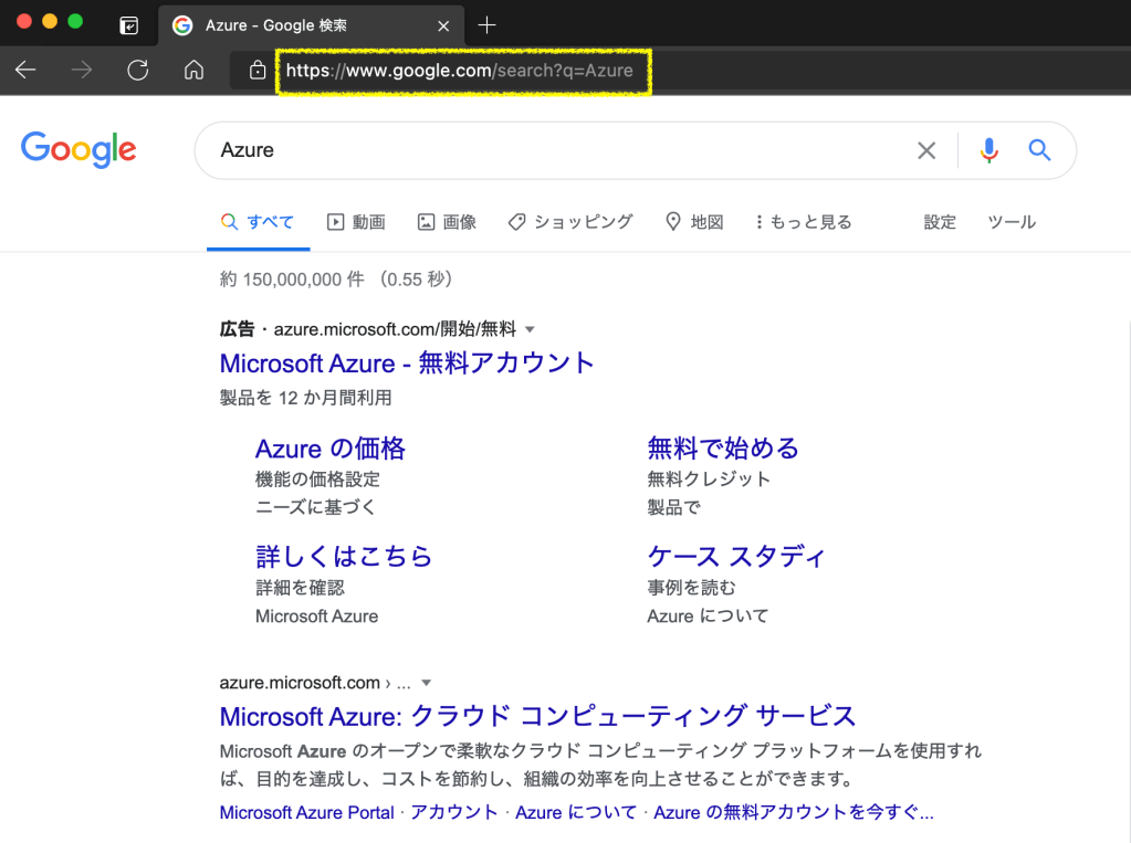 この内容は、ふつうにGoogle先生に問い合わせた場合 (https://www.google.com/search?q=Azure) と同じ。