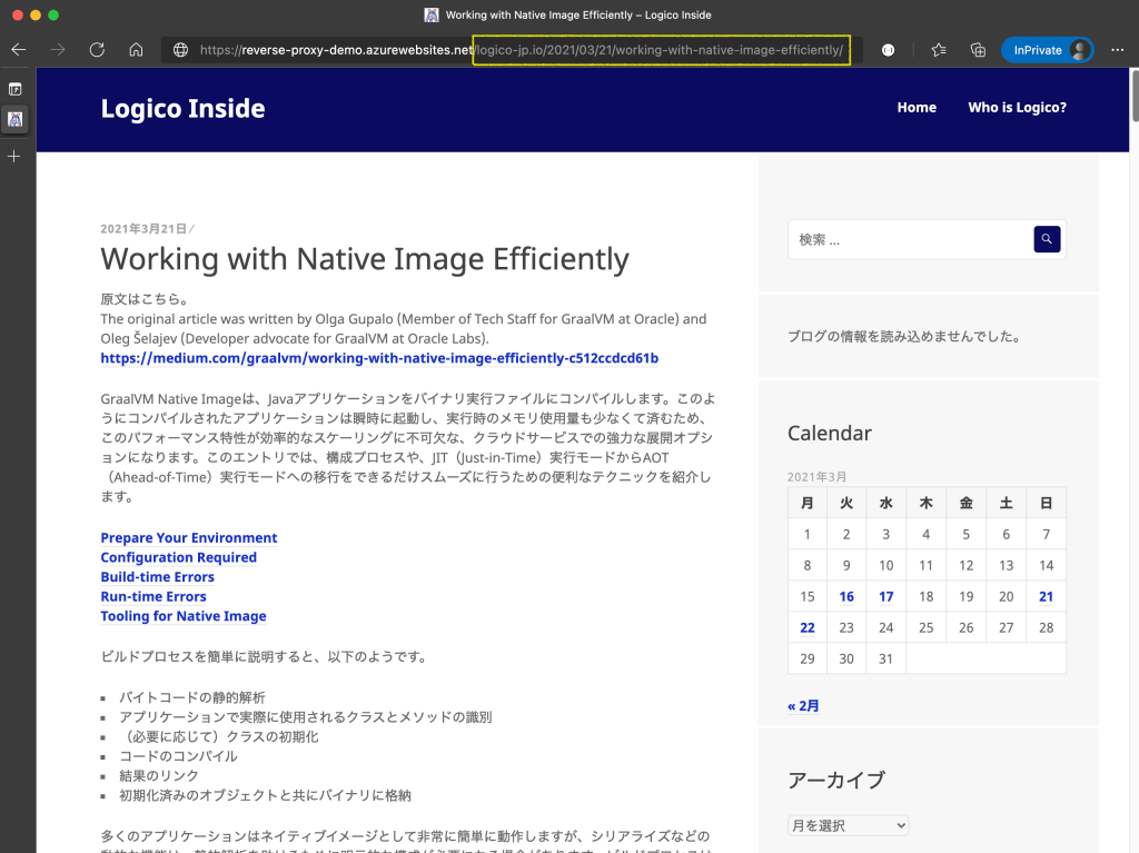 標題の通りで、機能実験をやってみた。もちろん、Containerでnginxをプロキシに仕立てて、それをWeb App for Containerに載せてもよいし、API ManagementのGatewayを使ってもいい。もしVNet内のVirtual MachineからWebにアクセスさせたいなら、こういうやり方もある、という実験。
