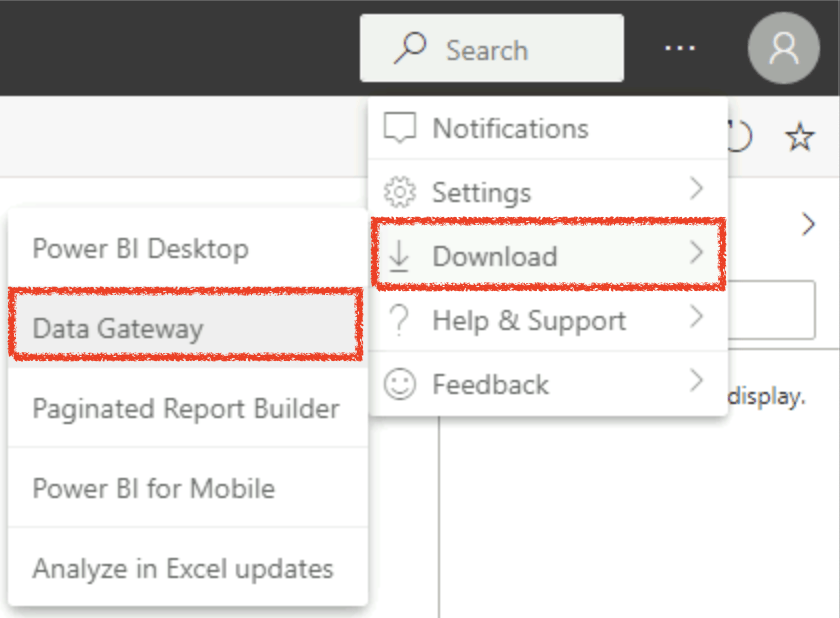 ・・・をクリックしてSettings (設定)> Manage gateways (ゲートウェイの管理)とたどり、Power BI Serviceが利用するOn premise Data Gatewayを確認する(下図左)。なお、On premise Data Gatewayのバイナリは、Download (ダウンロード)> Data Gateway (データゲートウェイ)で開くWebページからダウンロードできる(下図右)。