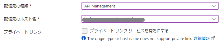 これは前述の通り2025/3に一般提供を開始したもの。以前は以下のスクリーンショットのように、API Management (Application Gatewayも同じ) でFront Doorからの接続を構成しようとするとPrivate Linkを使った接続を構成できなかったが、ようやく使えるようになった。
