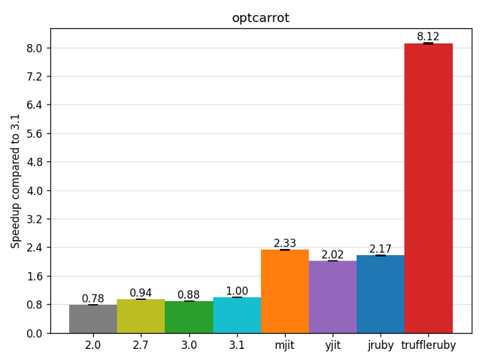 optcarrotベンチマークは、Yusuke Endohが作成したRuby 3×3の有名なベンチマークの一つです(私のブログ記事です)。