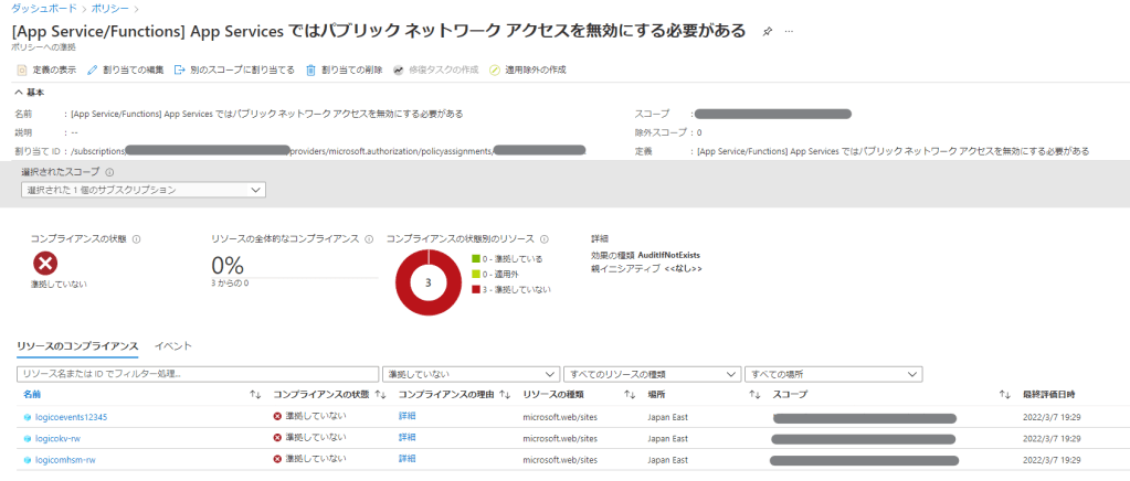 ルール違反したリソースはAzure Portalでどう見えるか?