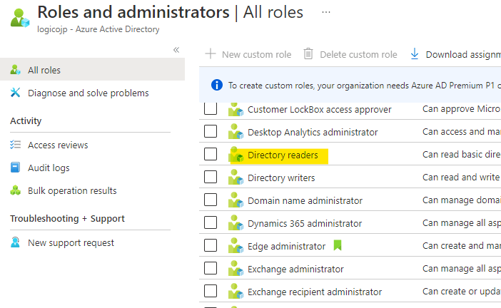 Azure AD認証を利用するためには、Managed identityにAzure ADロール (Directory Readers) を付与する必要がある。手法は以下の2個だが、必要なAzure ADのSKUが違うので注意。