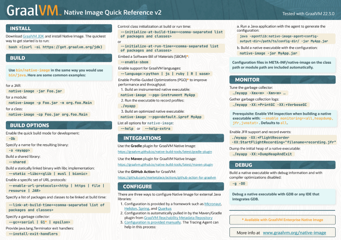 このQuick Referenceでは、この1年間で最も頻繁に使用されたオプションとGraalVM Native Imageの新しい統合について概説しています。