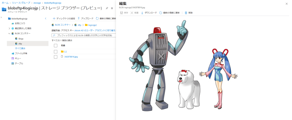 Connected to blobsftp4logicojp-secondary.blob.core.windows.net.