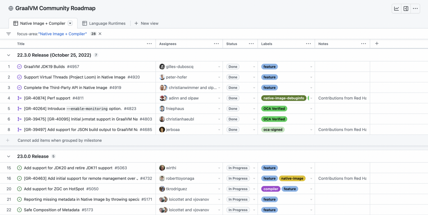 GitHubにGraalVMの公開ロードマップを追加しました。ここから現在取り組んでいること、そして今後のリリースで期待できることを一箇所で確認できます。ロードマップはこちらでご確認ください。