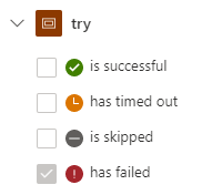 以下の例は、tryスコープで失敗時に実行する、と条件設定した場合。スコープには下図右のように赤い丸がついている。