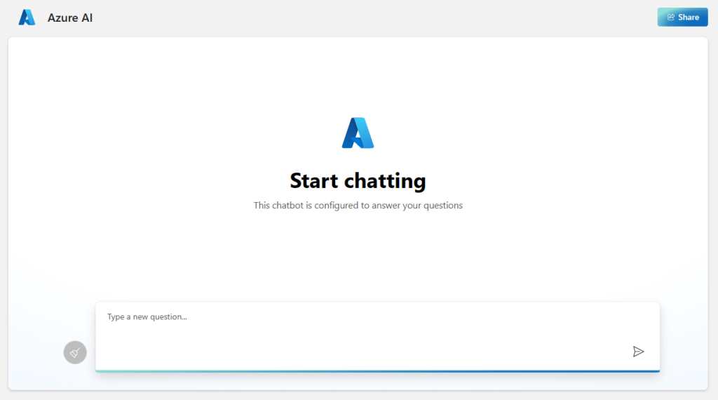 Use your dataでWebアプリをデプロイしていれば、以下のようなUIを持つ、App ServiceでホストされたPythonアプリがFrontendとして動作することを確認できるはず。