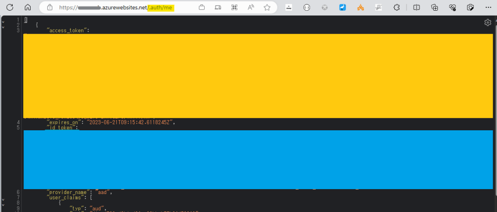 このAPIをホストするWeb AppがAzure ADで認証するよう構成されているため、API呼び出しにあたってはBearer tokenをつける必要がある。本気で利用するならOAuth 2.0のお作法に則る必要があるが、テスト目的であれば、