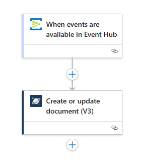 今回はEvent HubsからLogic Appsでデータを取り出し、最終的にCosmos DBに書き出す構成にした(もちろん、Stream Analyticsでやってもいいので、お好みで)。バックエンドサービスとしては本来ならAOAIにすべきではあるが、8,192Byteの制約がないことを確認するため、単純に9,000Byteの文字列を返すLogic Appsで作ったモックサービスを設定している。そしてEvent Hubsに入ったカスタムログは、Logic Appsが仲介してCosmos DBに書き出している。このLogic AppsはEvent HubsのトリガーアクションとCosmos DBのアクションを使ったシンプルなもの。