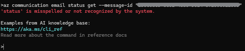 あと、注意点としては、Quick Startに記載のaz communication email statusのコマンドは、現在存在しない。実際、az communication email statusを実行すると、