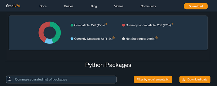 パッケージがGraalPyと互換性があるかを確認するための初期ツールとして、Python Compatibility Checkerの利用をお勧めします。
