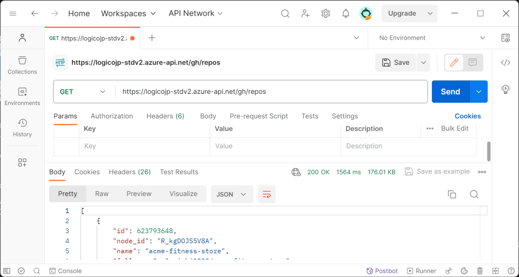 テスト自体はドキュメントの通りやれば問題なく動作するが、今回はlist reposというAPIを作成したのでこれを試してみる。このAPIは、筆者が持つリポジトリのリストを出力するもの。