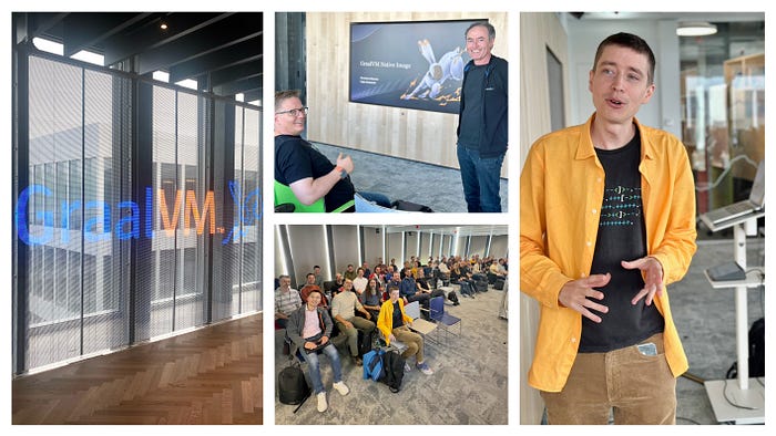 毎年のお気に入りのコミュニティ・イベントの一つが、GraalVM Community Meetupです。チューリッヒで開催される2日間のイベントで、パートナーやコミュニティ・メンバーと会い、最近のアップデートや今後のアップデートについて話し、様々なトピックについてワーキング・セッションを行います。(訳注:こっそり筆者も映っています)