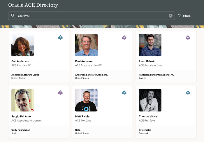 もう1つの大きなアップデートは、GraalVM ACEができたことです。オラクルACEプログラムは、貢献した技術エキスパートやコミュニティ・リーダーを評価し、促進するものです。私たちは、GraalVM ACEとして加わったThomas Vitale、Matt Raible、Sergio Del Amo、Ionut Balosin、そしてGraalVMの専門知識を持つ既存のACEであったGail AndersonとPaul Andersonとともに、私たち自身のACEカテゴリーを持つことができたことを大変嬉しく思っています。おめでとう、そしてようこそ!