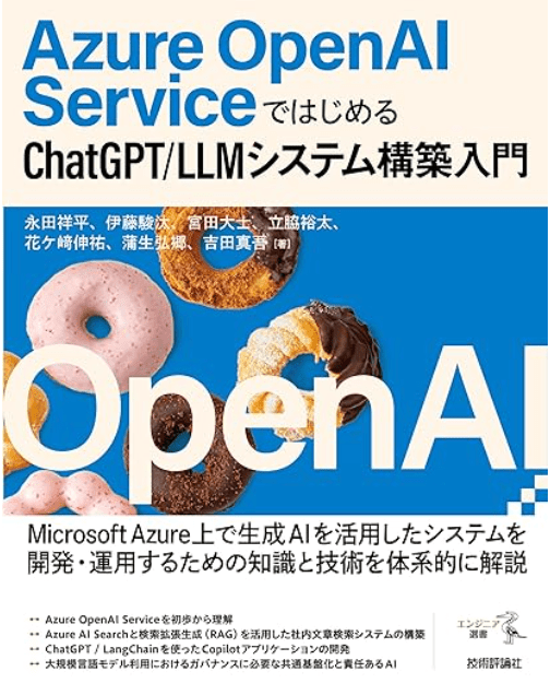 「基盤」という言葉に嫌悪感を持つ人もいるかと思うが、エンタープライズで利用するとなると、どうしてもこういう概念が必要になる。おおよそAzure OpenAI Serviceリファレンスアーキテクチャの第6章に記載されているが、書籍ではできる限り最新情報を詰め込んでくれている。