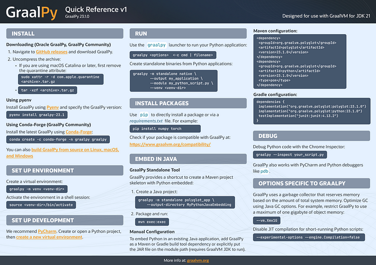 すでにGraalPyを使用している場合、もしくはGraalPy初心者であればなおのこと、GraalPyクイックリファレンスをどうぞ。非常に役立つと思います。