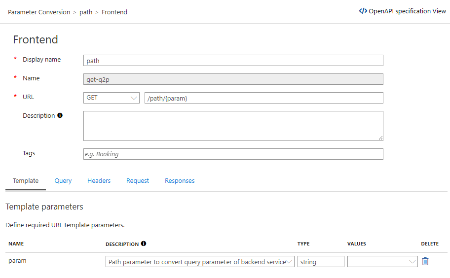 現在Path Parameterを使うようなAPIをBackend Serviceとして利用しようと考えている。API利用者にAPI Gatewayをバイパスされたくないので、パラメータをいろいろ変更しておきたい。そのためにも、Path ParameterをQuery Parameterに置き換える必要があるのだが、Azure API Managementではどのように構成すればよいか?