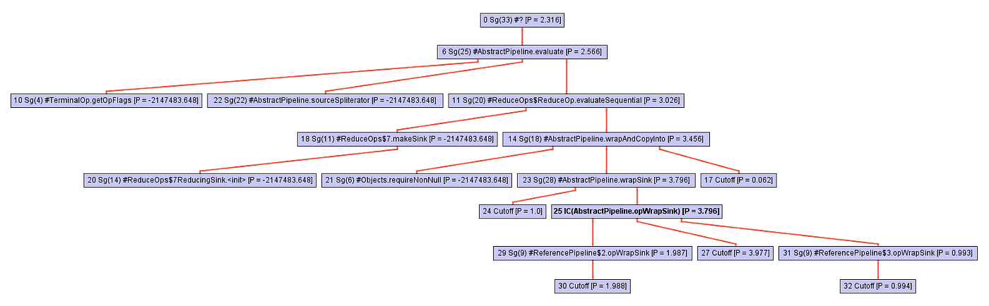コールツリーを探索しているうちに、ある時点でインライン化機能(inliner)は、StreamフレームワークからのopWrapSinkという抽象メソッドへの呼び出しに遭遇します。